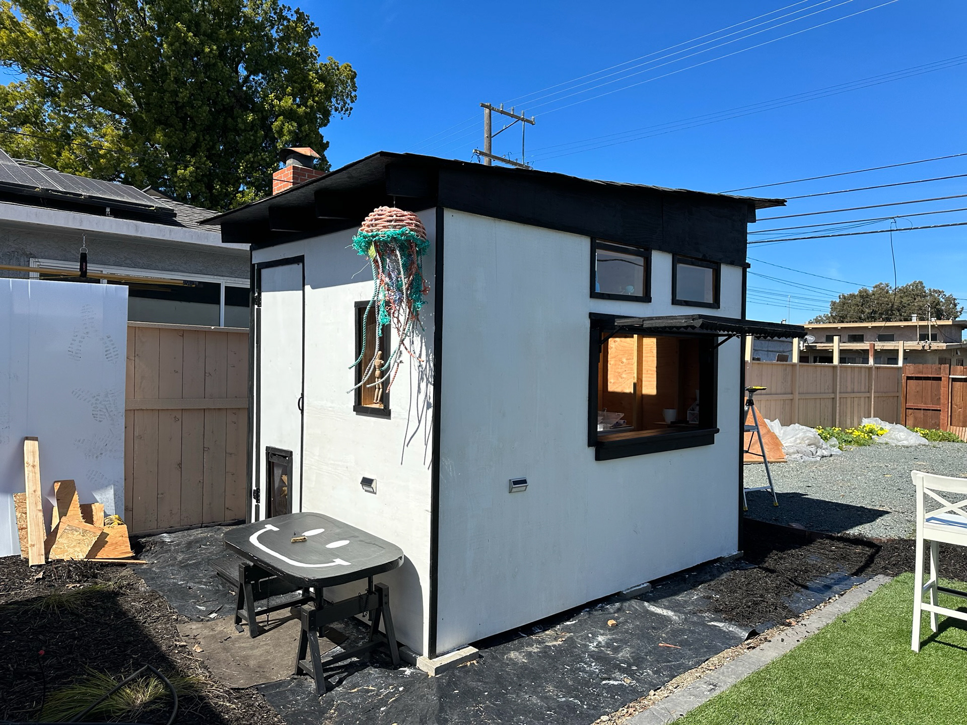 Starting with a sturdy, chemically treated foundation, we’ll build up to a sleek asphalt shingle roof. This isn’t just any shed—it’s got a swiveling doggy door for your furry friend and a hinged window that doubles as a mini bar stand.